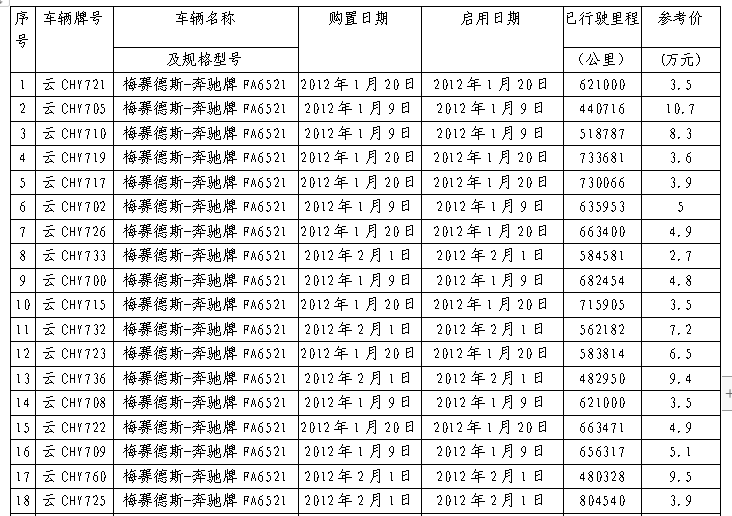 根據(jù)中標(biāo)通知,受云南昭通交通運(yùn)輸集團(tuán)有限責(zé)任公司委托:對外招商、公開拍賣31輛商務(wù)客運(yùn)國有車輛所有權(quán)(不含運(yùn)營權(quán))。以輛為單位拍賣。增價(jià)拍賣,價(jià)高者得。相關(guān)事項(xiàng)公告如下: