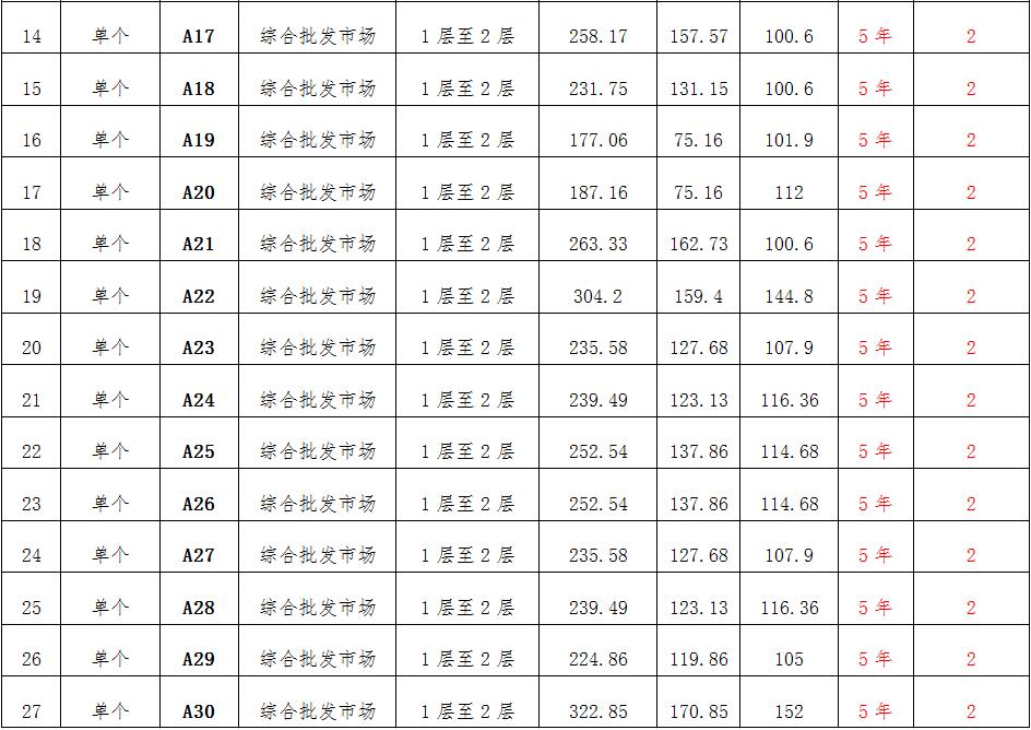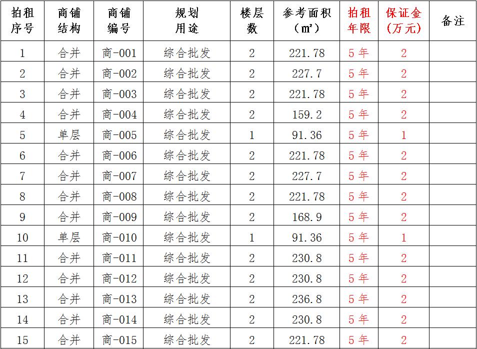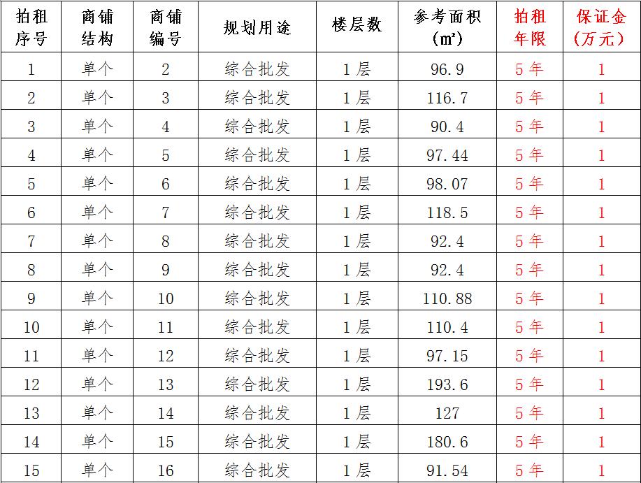 (一)拍租位于鎮(zhèn)雄縣南臺街道呢嚕坪安置點(diǎn)7棟獨(dú)立商鋪使用權(quán)。以棟為單位拍租。詳見下表: